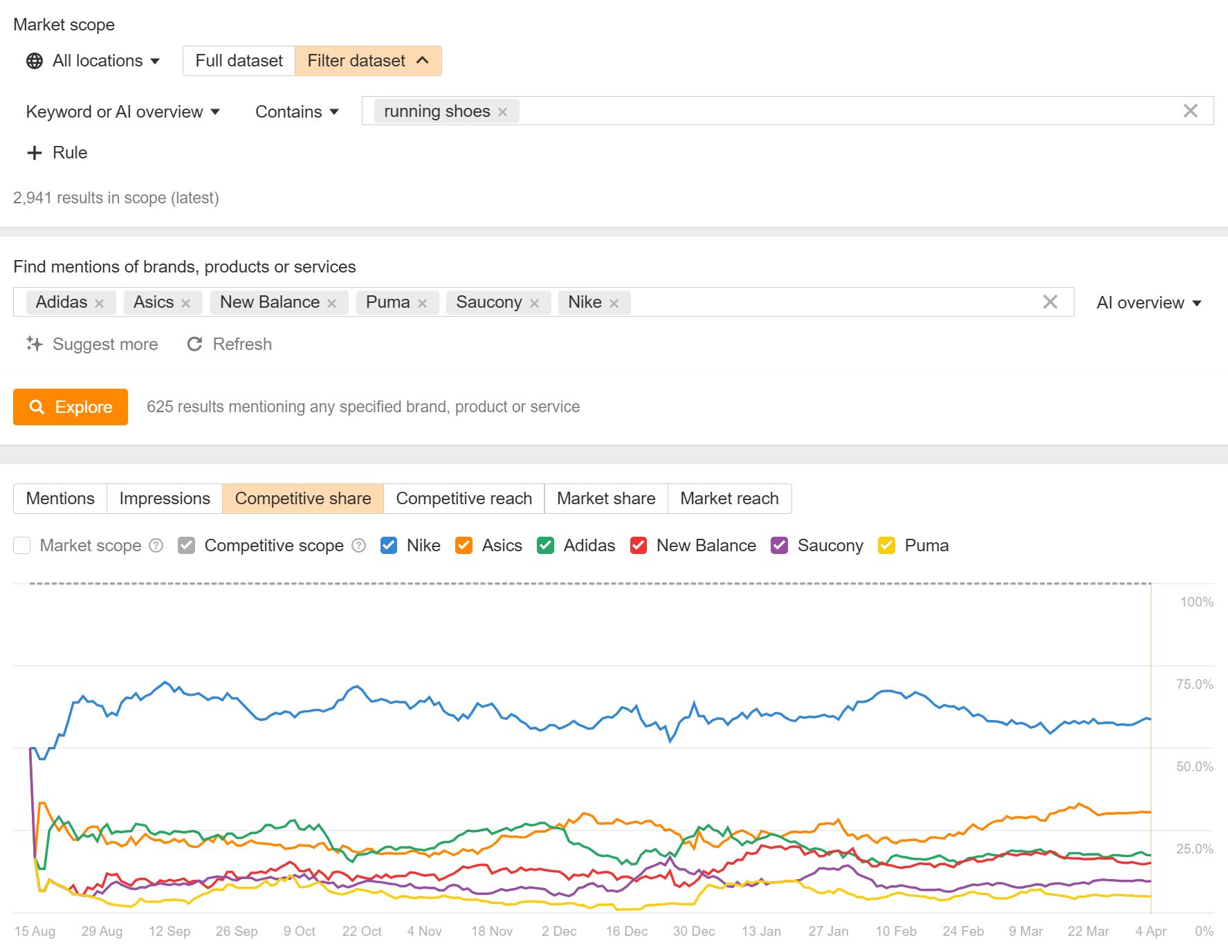 You can use our new tool, Brand Radar, to track your brand’s visibility in AI mentions, starting with AI Overviews.